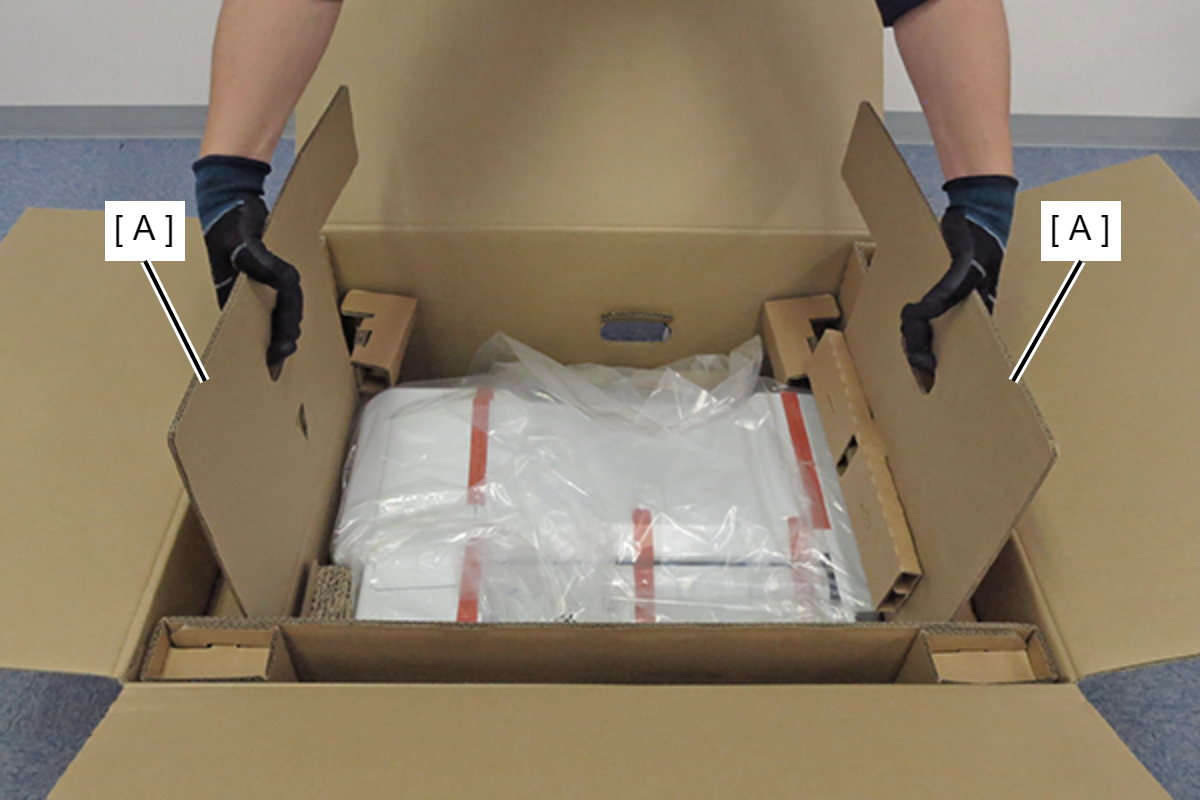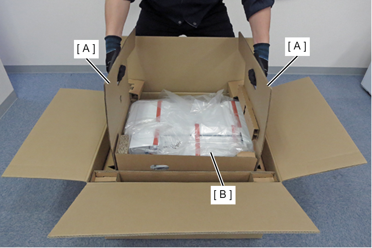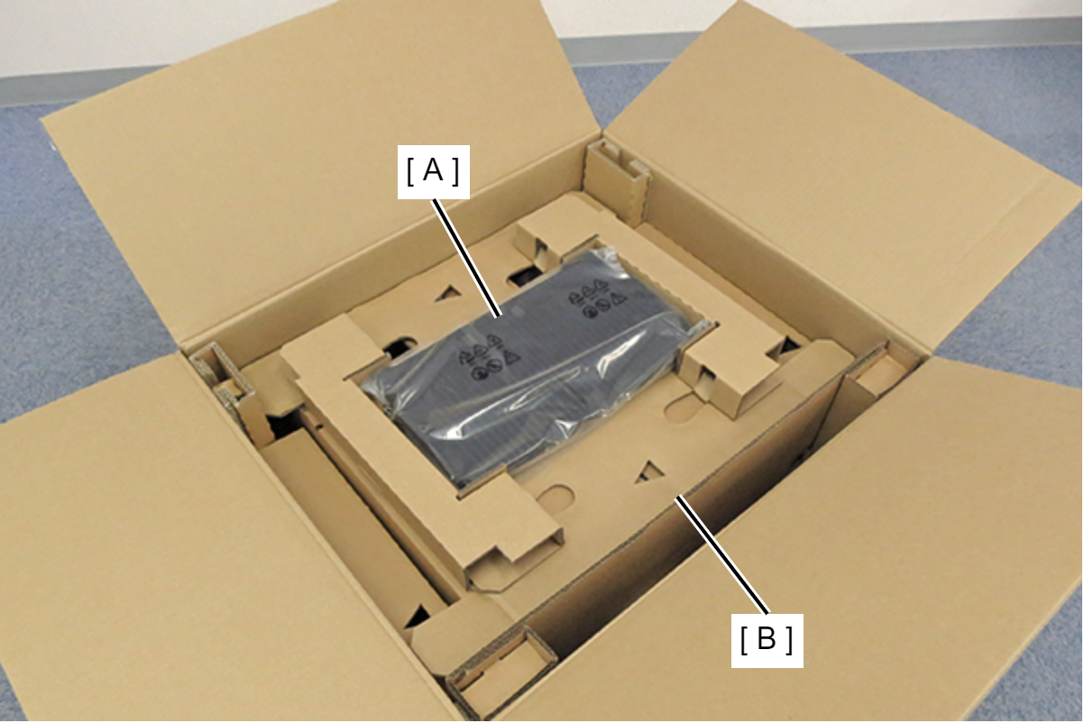 - Hold the handle (A) and remove the inner finisher (B) together with the packing material.