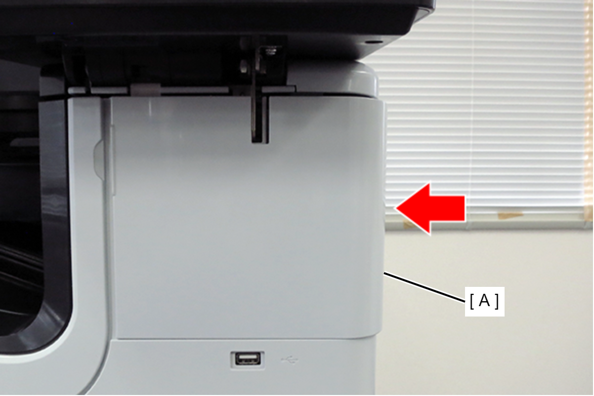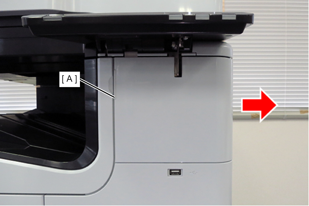 - Attach the lower panel cover (A) by sliding it in the direction of the arrow.