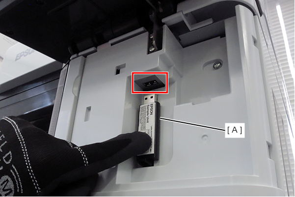 - Attach the wireless LAN unit (A) to the Wi-Fi unit port.