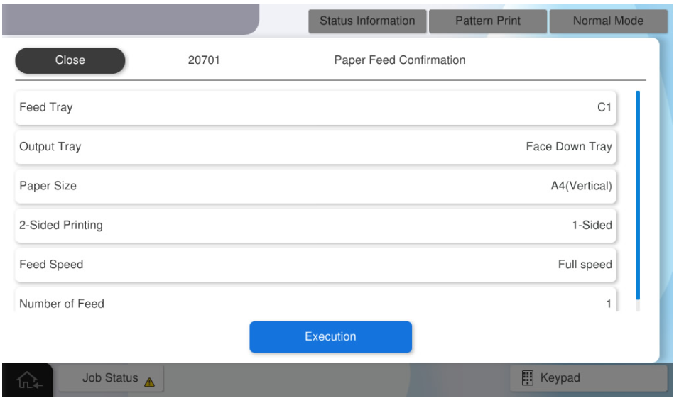 5. From the menu below, select the setting for which you want to check the paper feeding, and press [Execute].