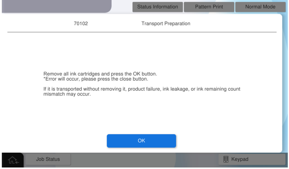6. When the following screen is displayed, open the front cover and remove all ink cartridges from the product.