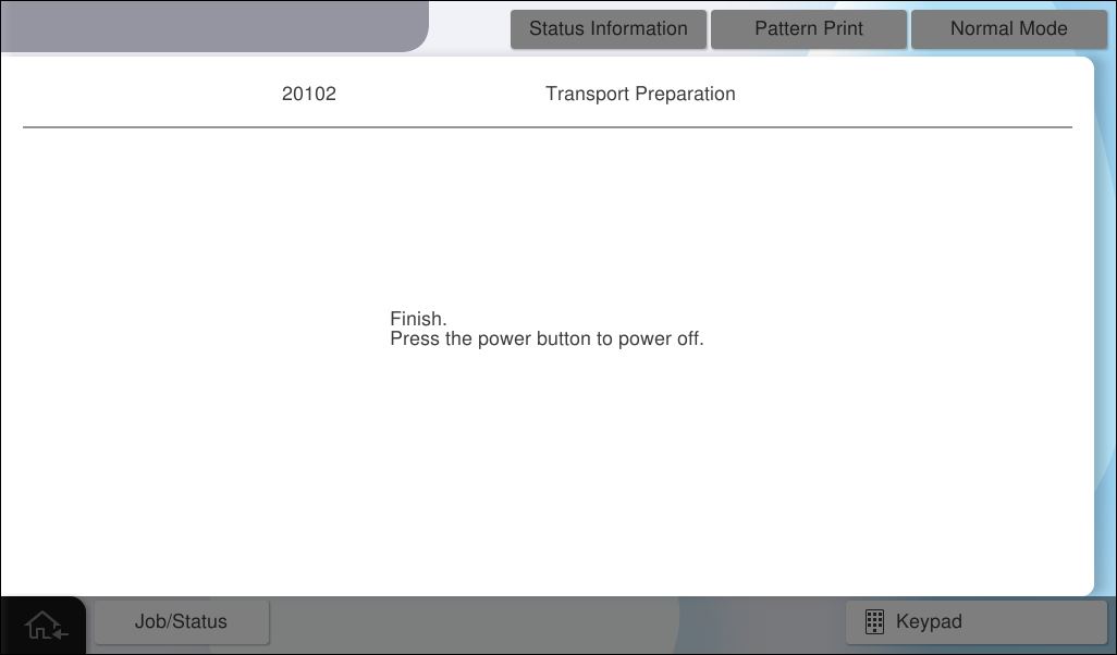 9. When the following screen is displayed, turn off the power of the main unit.