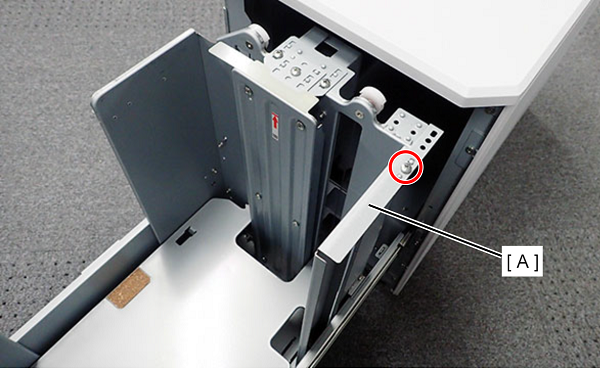 Remove 1 screw and remove the paper trailing edge regulating plate (A). (Attach the trailing edge regulating plate when switching from Letter to A4.)