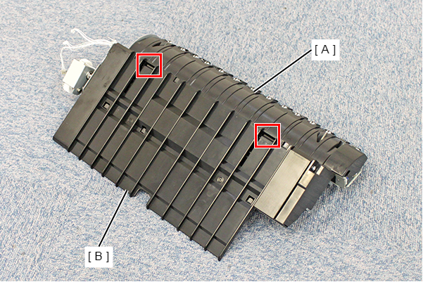 20. Align the hinge dowels with the two positioning holes (A), close the lever side, and attach the D3 unit (B).