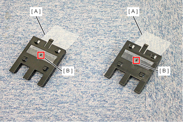 4. Peel off the release paper of the paper holding sheet (A), align the positioning holes with the dowels (B) of the sheet holder, and attach it.