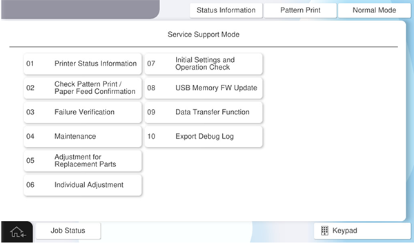 Just as on the LM-C4000 series, it is equipped with Service Support Mode, which features menus, etc., using a GUI.