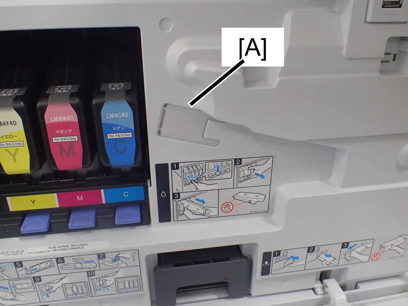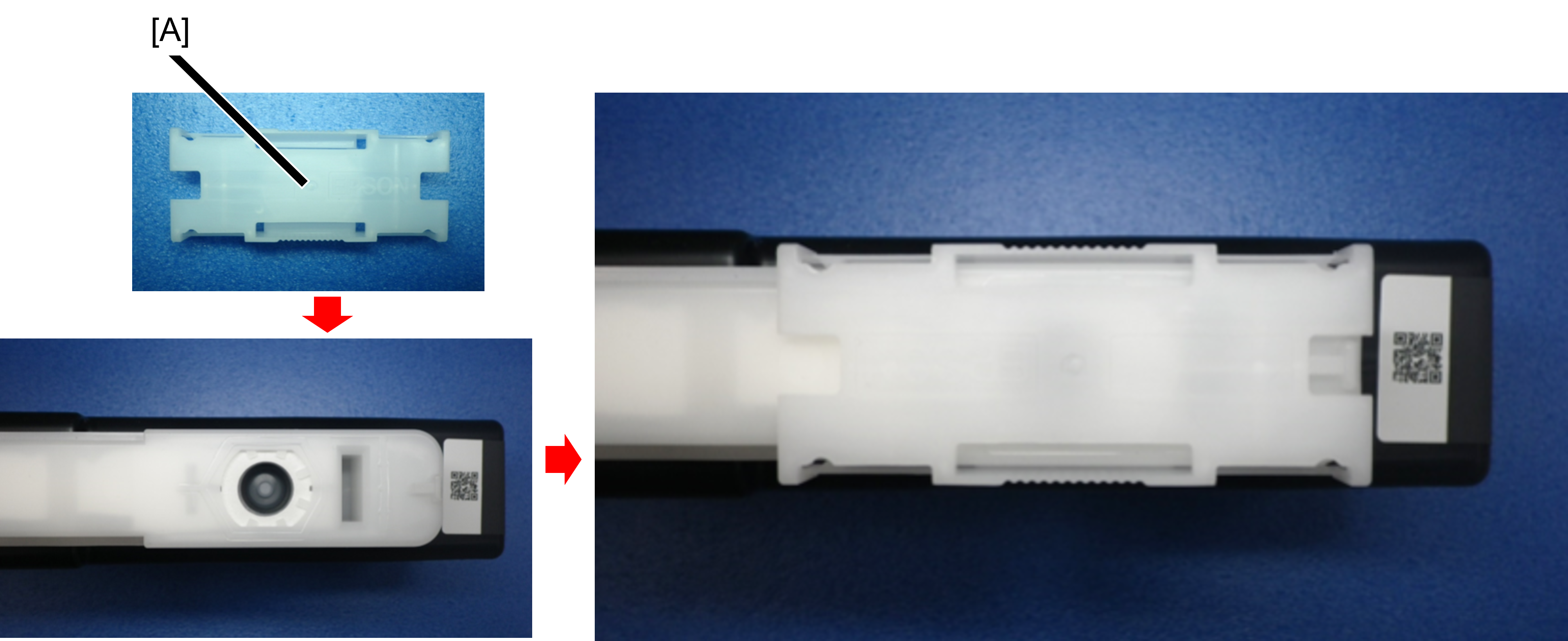 1. Immediately attach the ink supply port cap (A) to the removed ink cartridge.