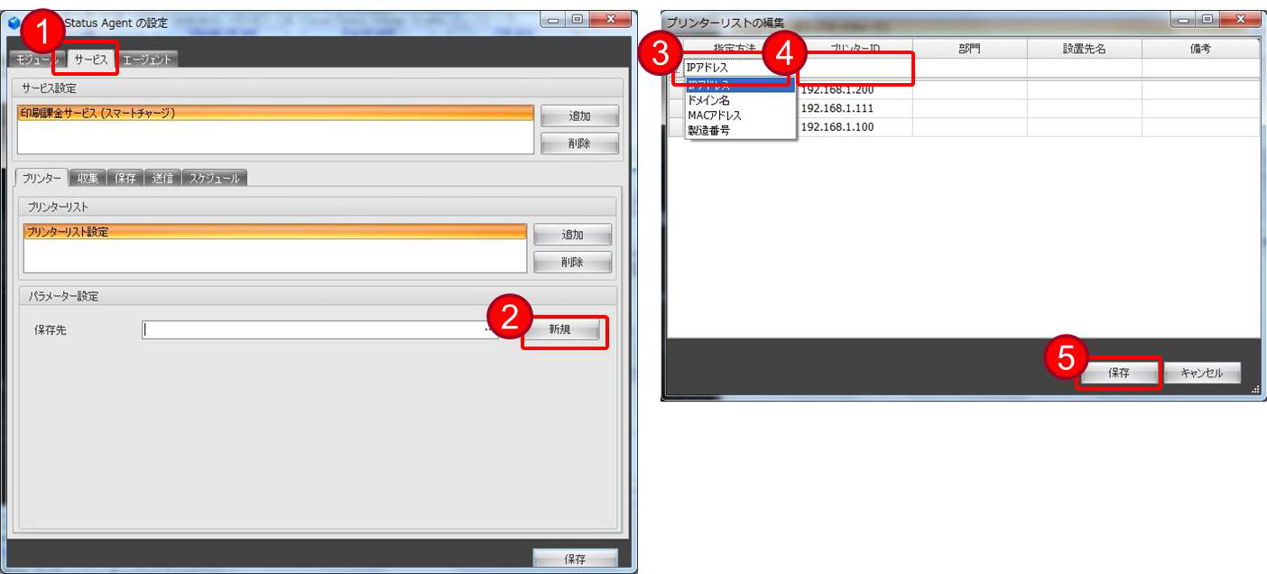 Set the list of printers managed by Device Status Agent.