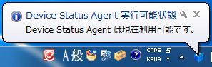 When the service starts, the Device Status Agent icon in the system tray shows "Ready" and turns from gray to blue.