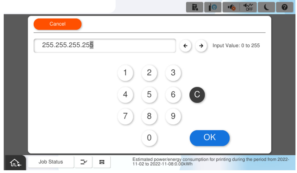 Check Point / チェックポイントWhen entering the IP address of the primary DNS, make sure to enter 0 to match the number of digits. When returning from the software keyboard screen, the 0 entered to match the digits are omitted on the display.