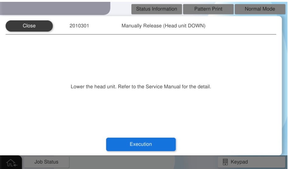 3. Select [2010302 Manually Release (Head unit DOWN)].