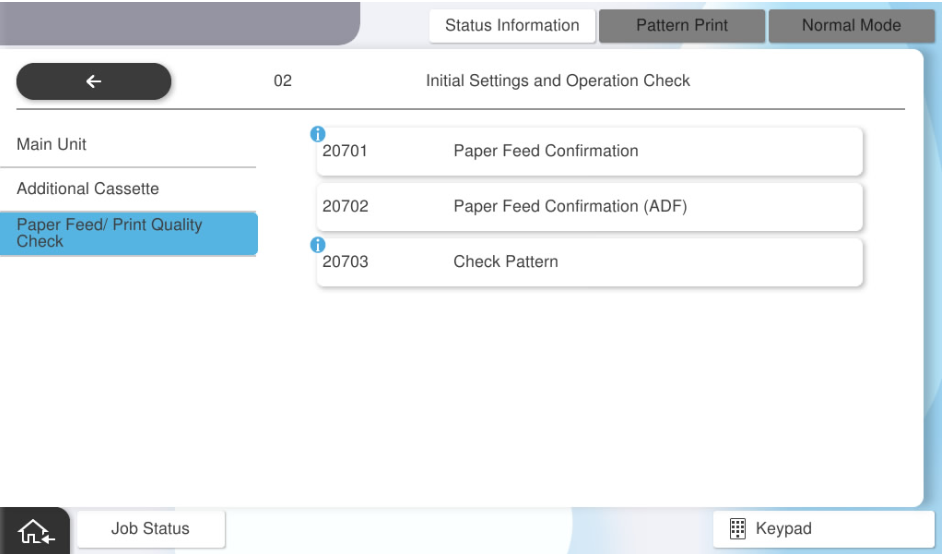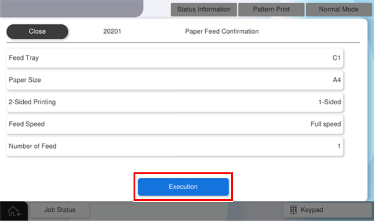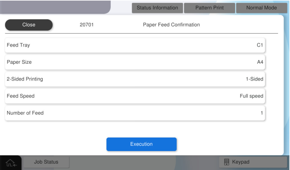 Check the paper passing of the main unit (blank paper passing). Various settings, such as the Feed Tray, Output Tray, and Feed Speed, can be changed to any values.