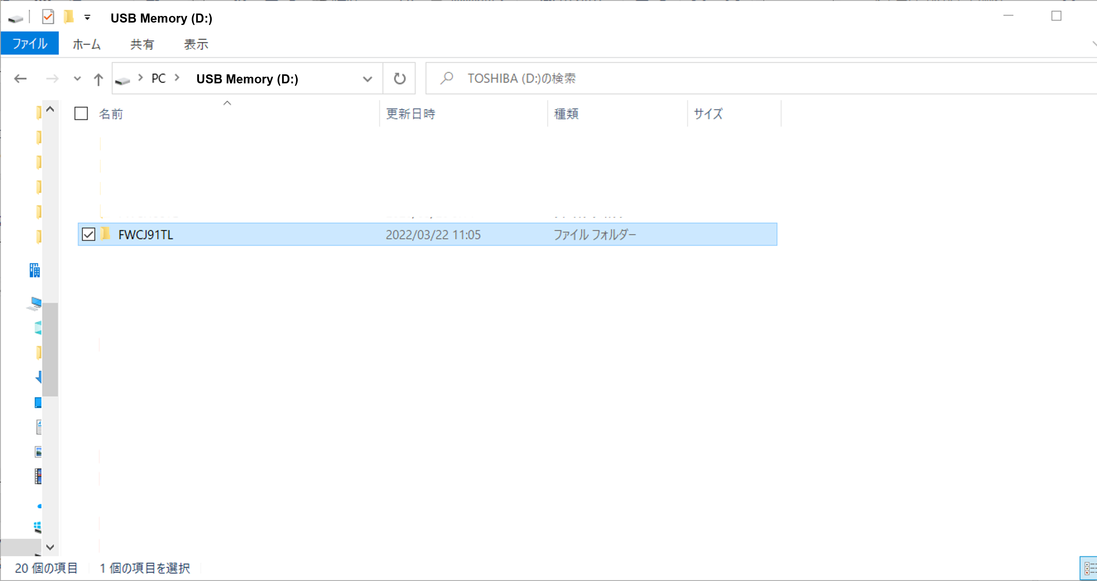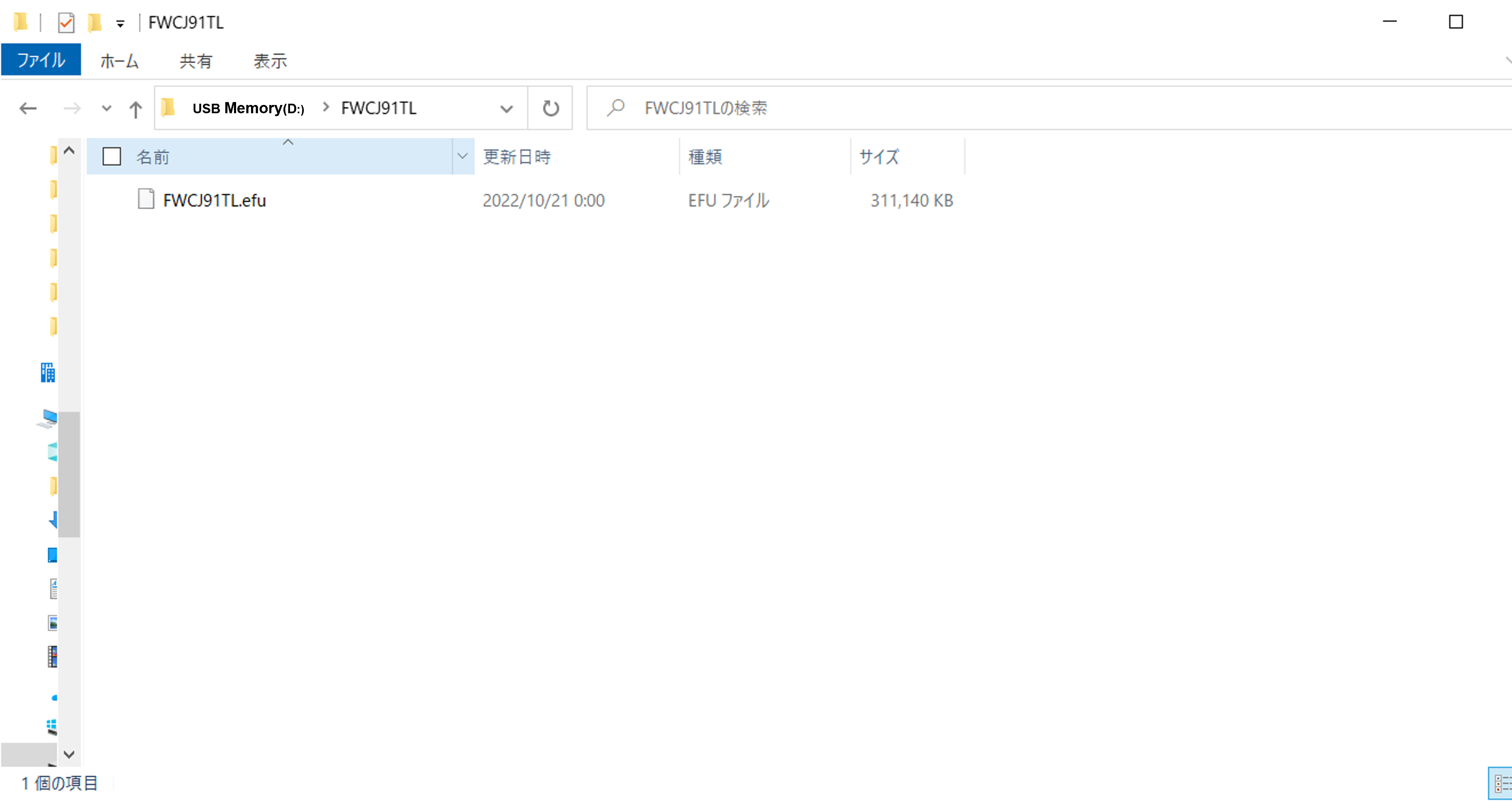 Connect the USB memory to your PC and create a folder named "FWCJ92TL" in the hierarchy directly under the USB memory.
