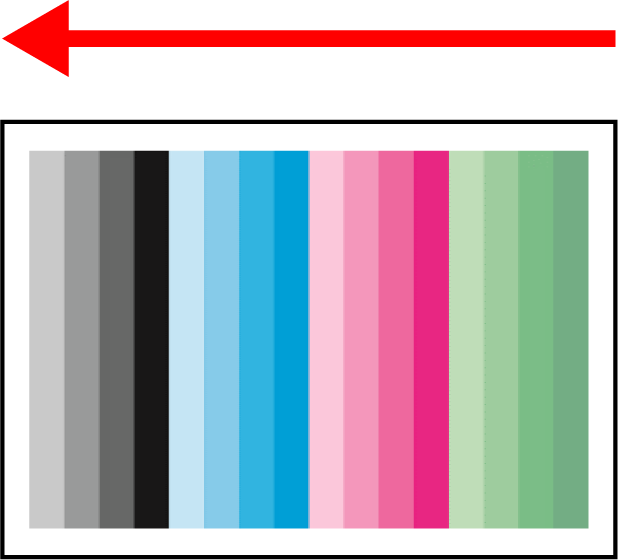 | Pattern Name | Specifications | Pattern Image (Paper transport direction: arrow direction) | Target image quality defect |